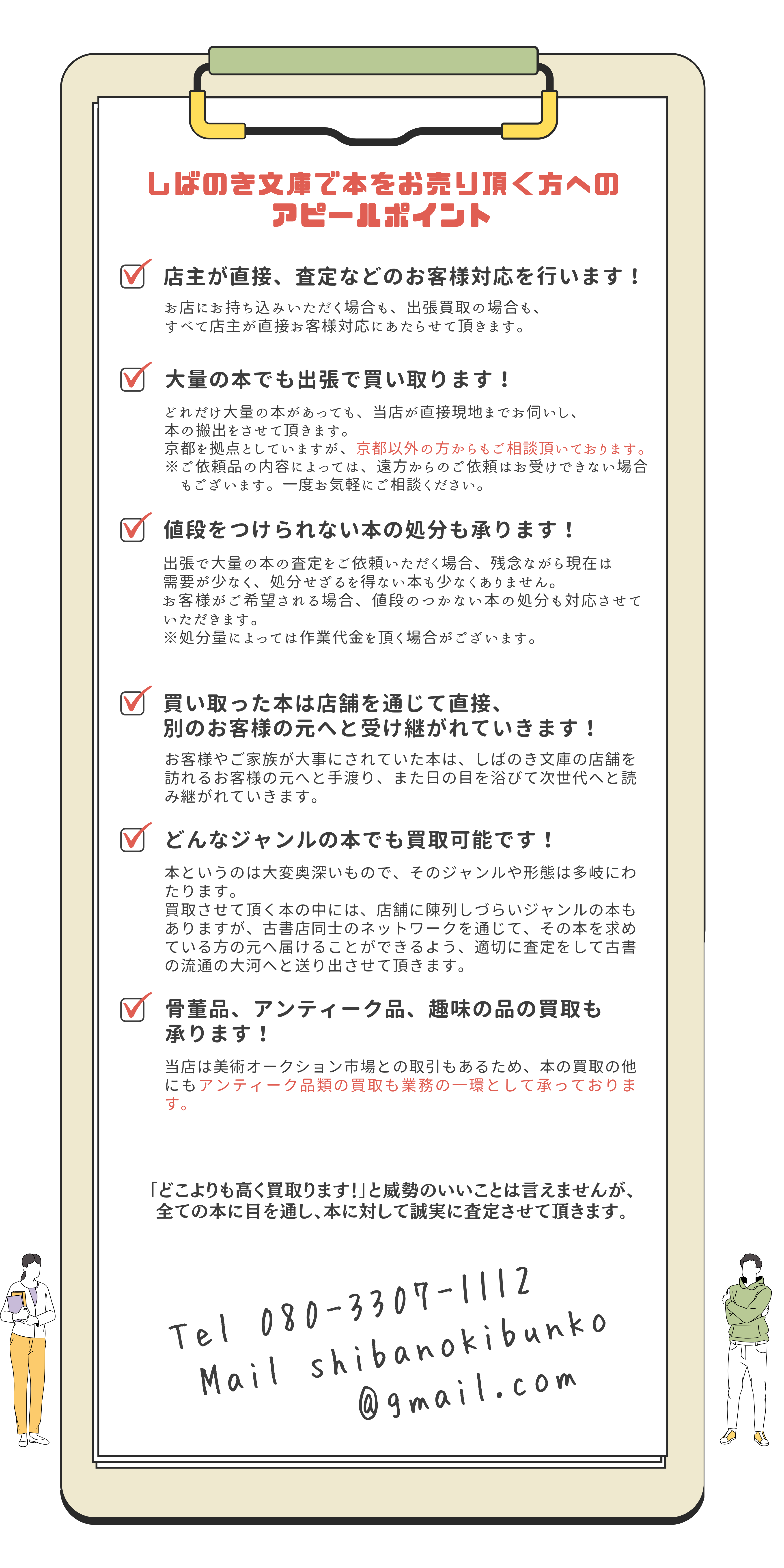 当店では、お客様がどのようにその本たちを引き継いでいってほしいか、お客様との会話を通じて、思いを大切にした整理を心掛けたいと思います。